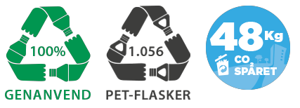 Materiale: 80% certificeret genanvendt plast af forbrugeraffald indsamlet i Europa – 100% genanvendelig.