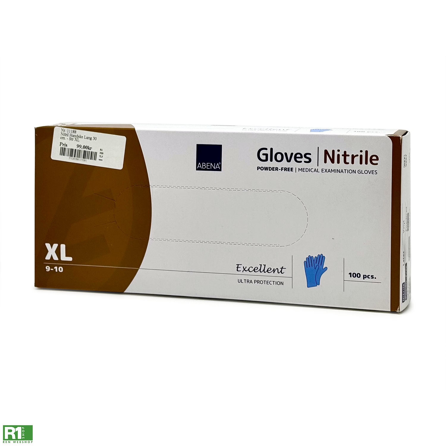 100 stk. blå, nitril, langt skaft 30 cm. Str. XL 9-10