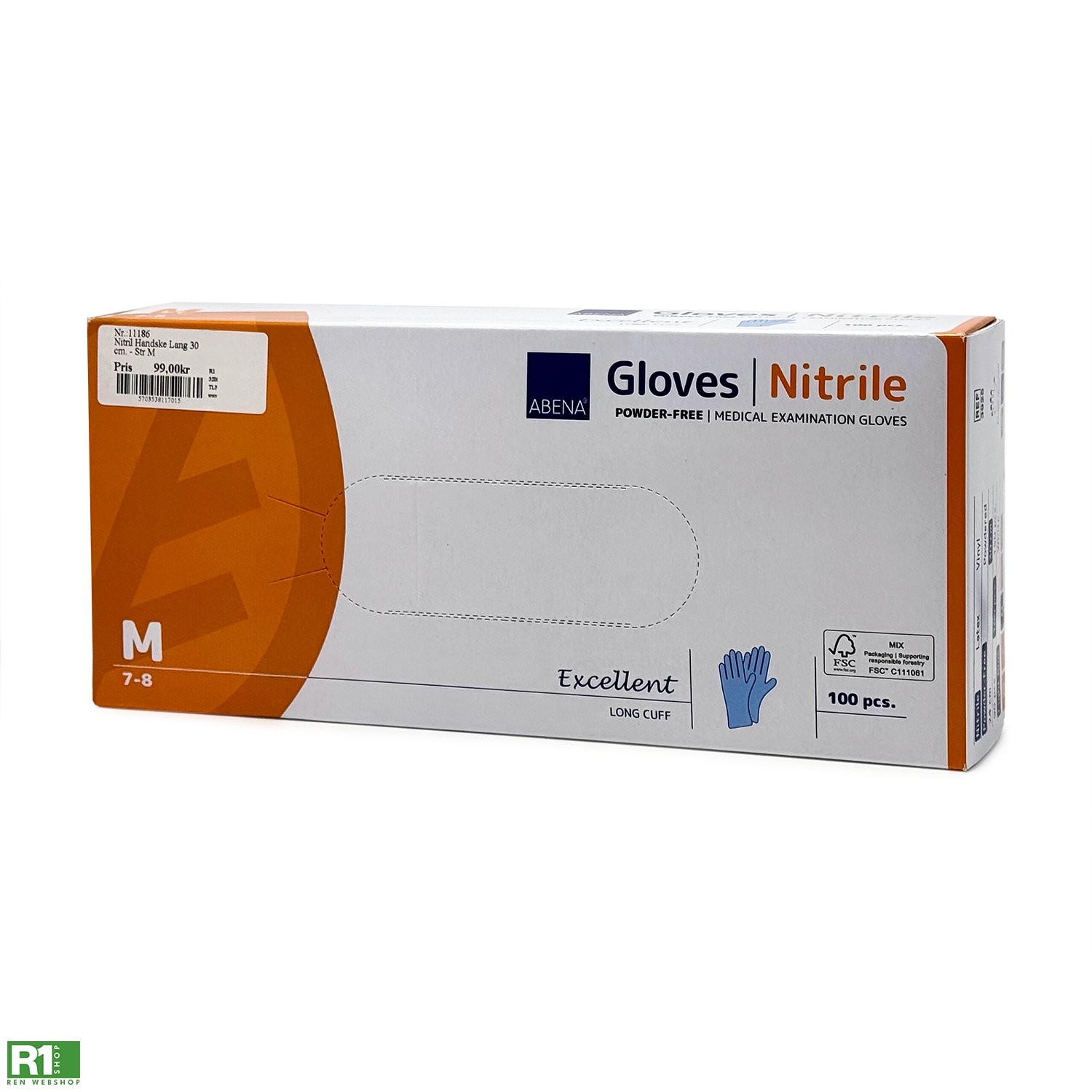 100 stk. blå, nitril, langt skaft 30 cm. Str. M 7-8