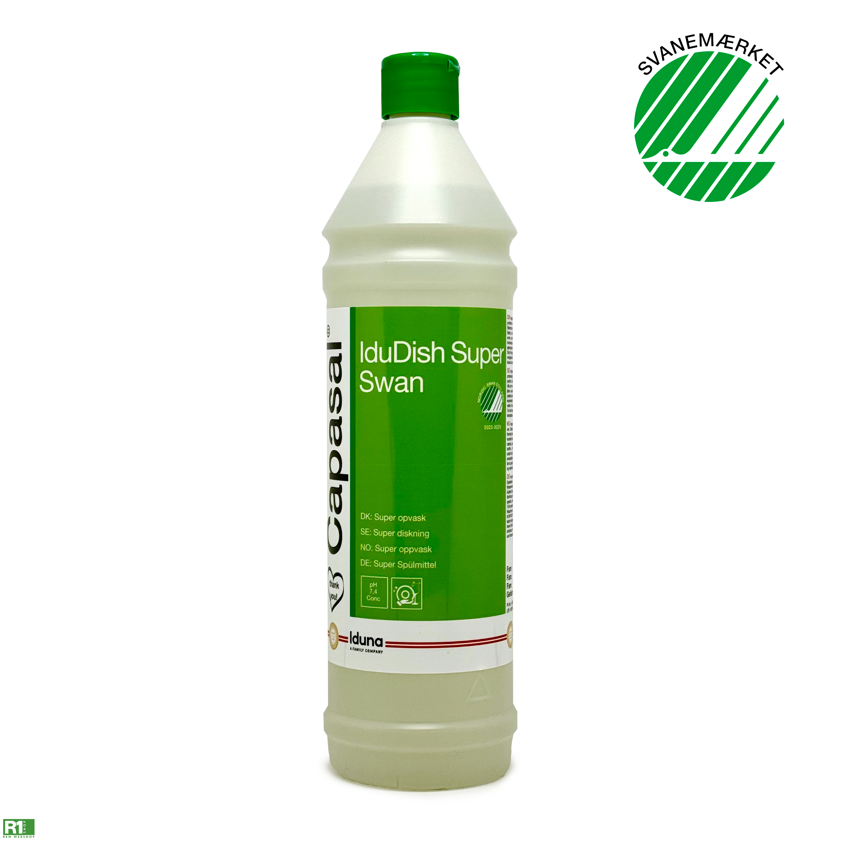 Svanemærket opvaskemiddel. Hed tidligere blot Iduna Super Opvask. Nu med nyt navn og ny etiket.