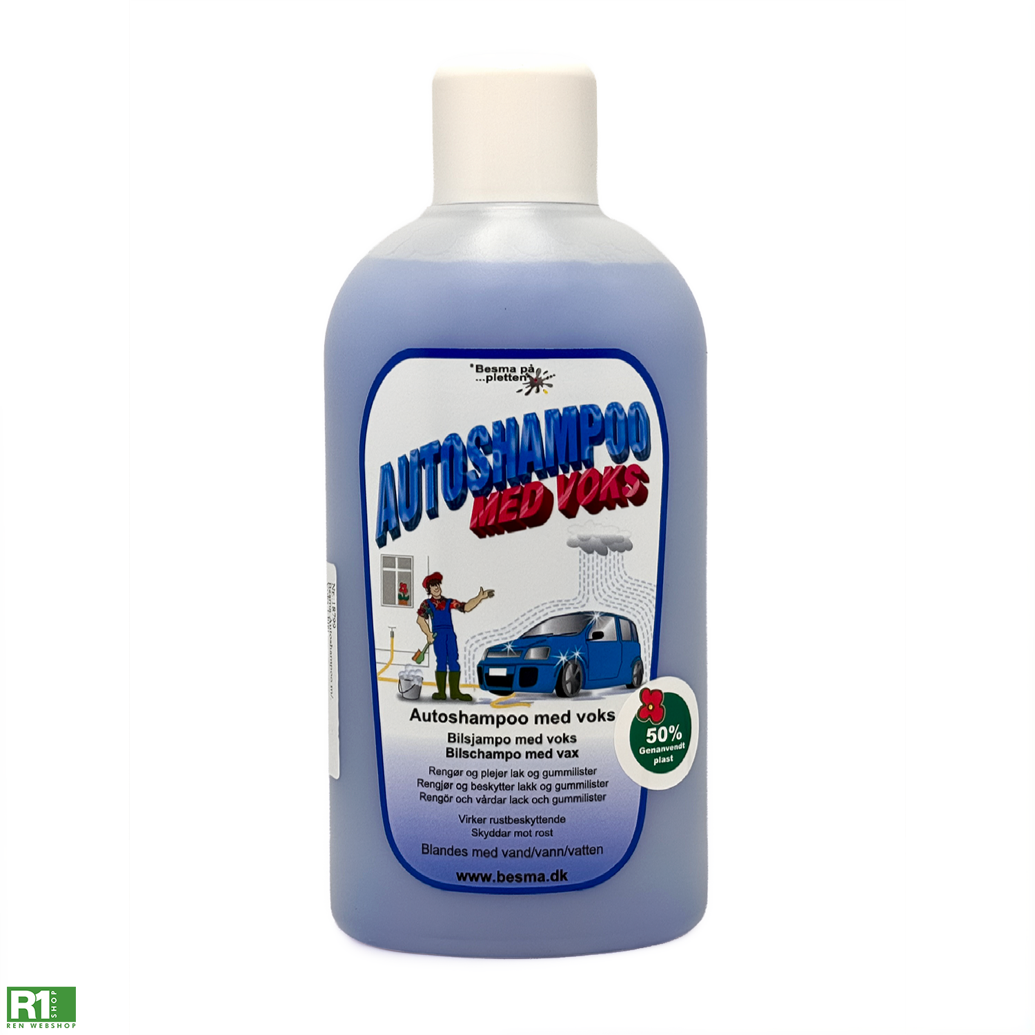 Besma bilvaskemiddel rengør og plejer lak, gummi- og plastdele. Efterlader en plejende og vandafvisende film. Praktisk bilshampoo med voks virker både som shampoo med voks sammen med den rustbeskyttende effekt.
