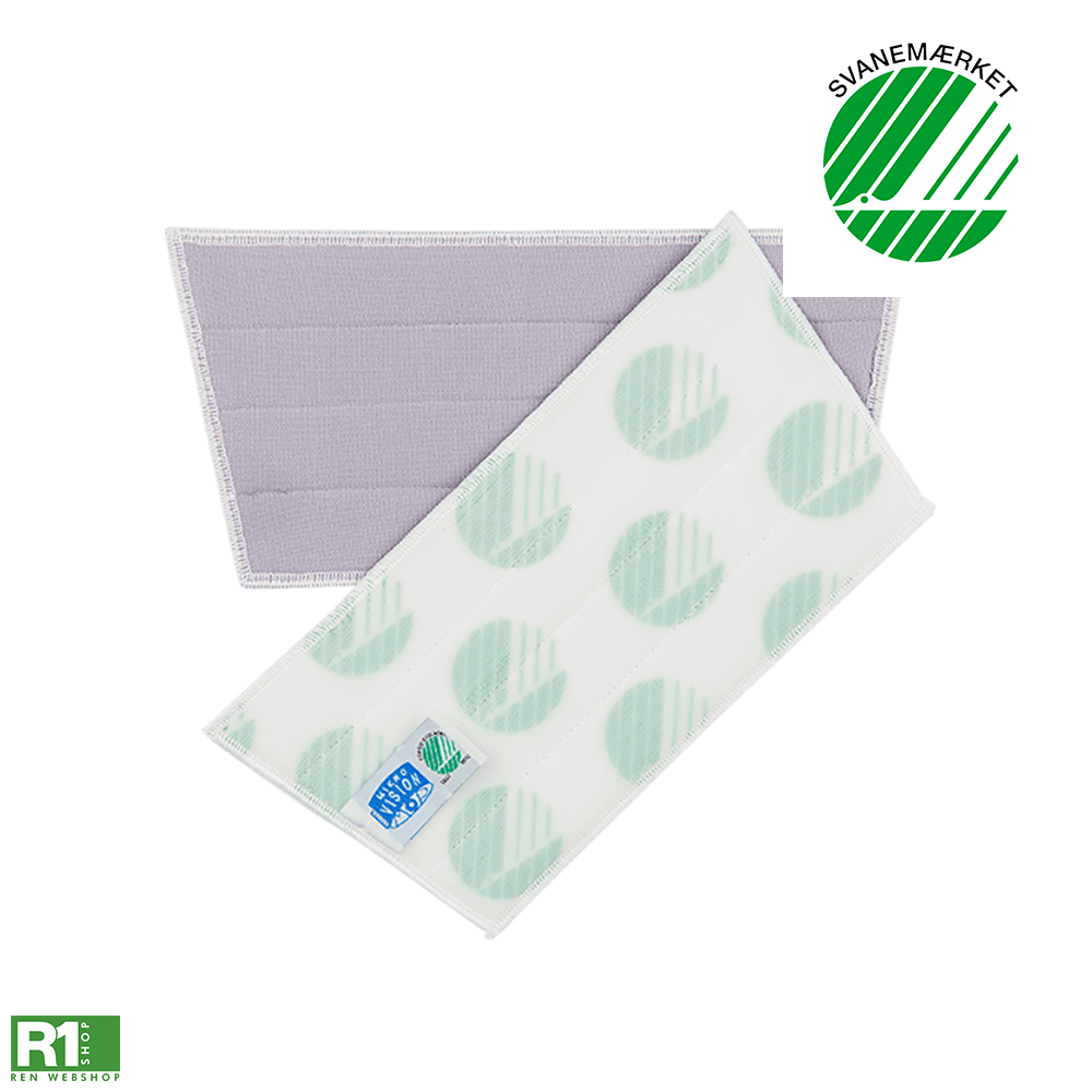 Fremstillet til effektiv rengøring af glas-flader, spejle og andre glatte overflader. De fine fibre sikrer ensartet rengøring uden stribning. Denne moppe sørger for maksimal absorbering, så du effektivt kan rengøre mange kvm. Ved anvendelse sprayes moppen sprayes med en forstøver med rent vand, evt. opblandet en lille mængde vinduessæbe. Moppen tåler klor og sprit og kan anvendes både tør og opvredet, og kan også anvendes helt uden rengøringskemi. Slider eller skader hverken glas eller glasflader ved anbefalet anvendelse.
